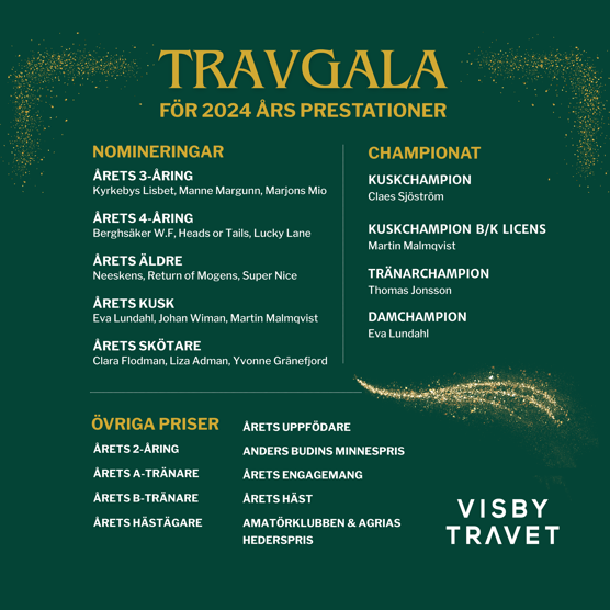 Vi ses, firar och njuter av 2024 års prestationer i restaurangen på Visbytravet efter travpremiären 26/4.
