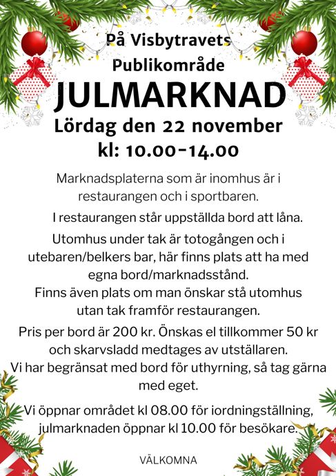 Vill du vara med att sälja så skicka ett mail till: info@visby.travsport.se